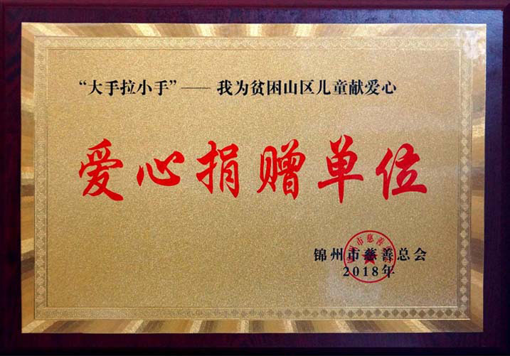 我公司被錦州市慈善總會(huì)授予“愛心捐贈(zèng)單位”稱號(hào)