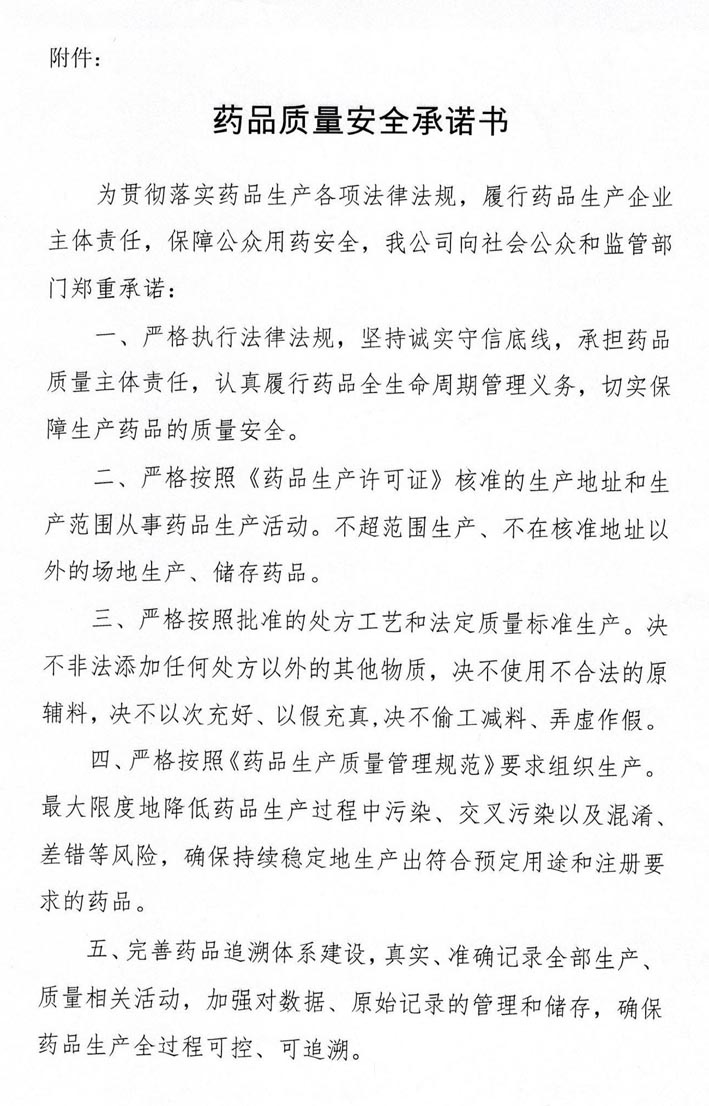 藥品質量安全承諾書